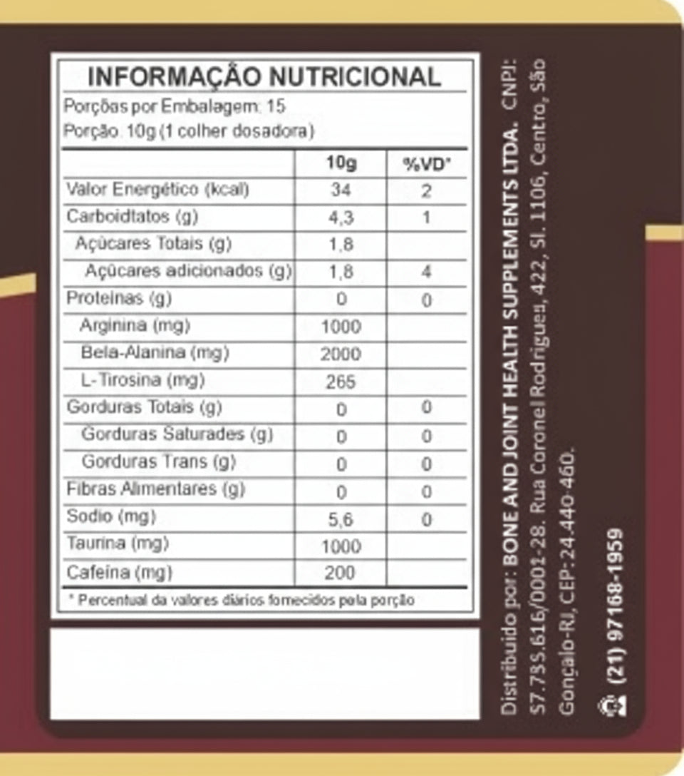 Com 1.000 mg de taurina e 200 mg de cafeína, sua fórmula avançada entrega força, concentração e resistência, preparando o corpo e a mente para extrair o máximo em cada repetição.